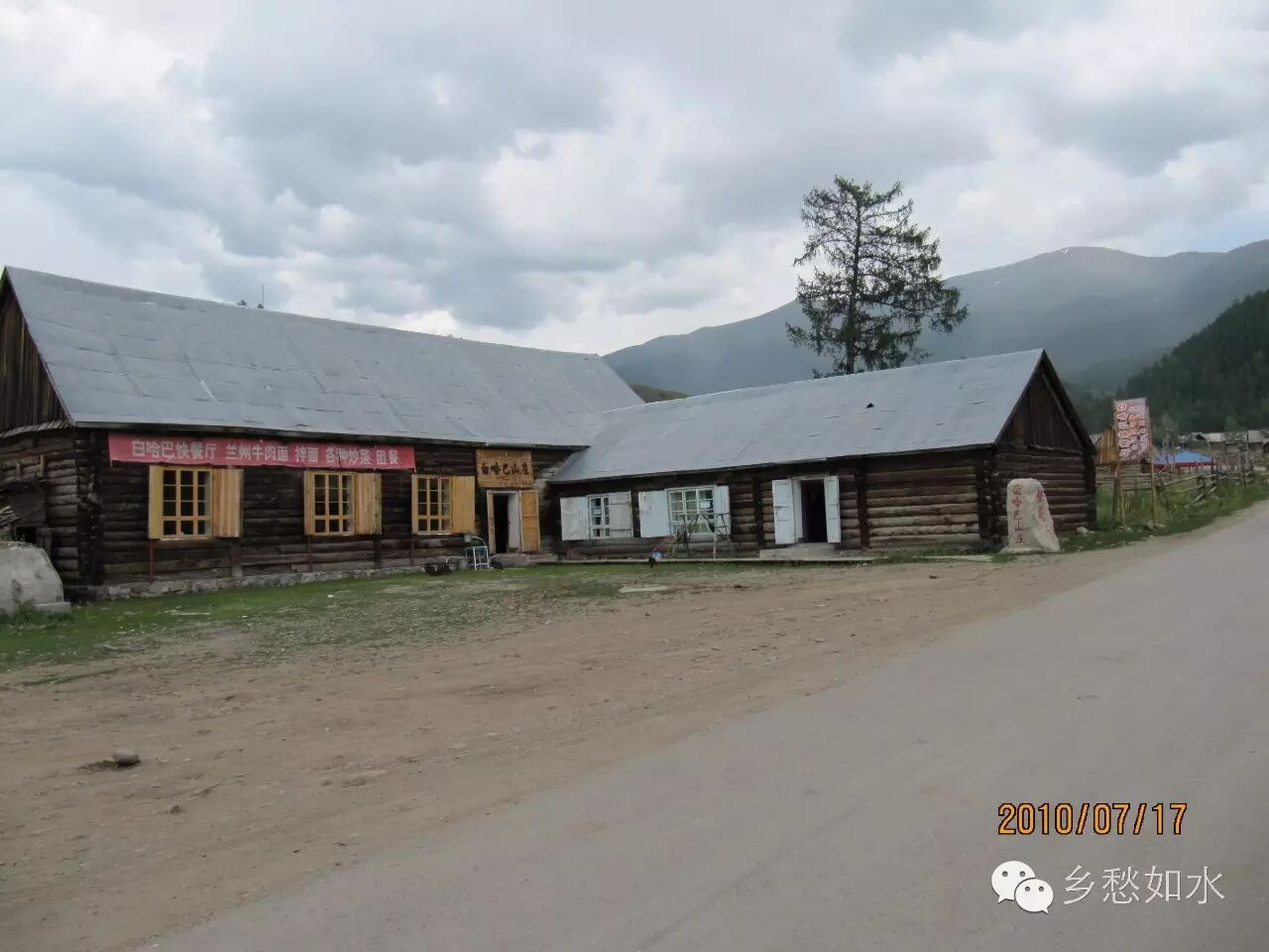 不知转了多少个弯后,终于来到了西北第一村,该村小巧精致,依山傍水,其墙体和顶棚都是用整根原木垒砌、拼接而成,顶部再用木板支撑成“人”字形的尖顶,既保温,又可防雨雪,外观古朴,具有欧式村寨的特色。