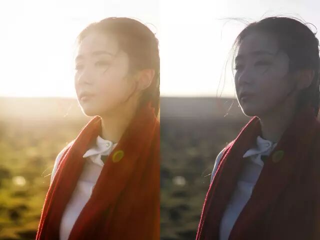 PS:拍摄逆光时最好选有一定透光度的服装或道具,并尽量让发丝飞起来,会增色不少哦。例如乔妹子那一身其实没啥好透的,我就让她努力飞红围巾,效果还不错~