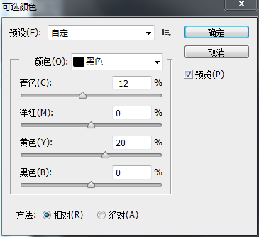 调整可选颜色中的黑丝,让黑色中的冷与黄色进行对比: