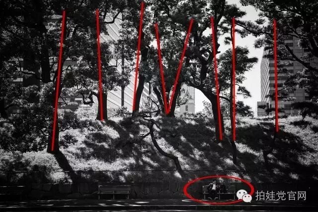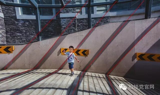 上图的魅力之处也许不是因为对称,而是有了墙上的树影斜线,所以才抓住了观赏者的眼球。那么下面我们来讲一讲------斜线构图。