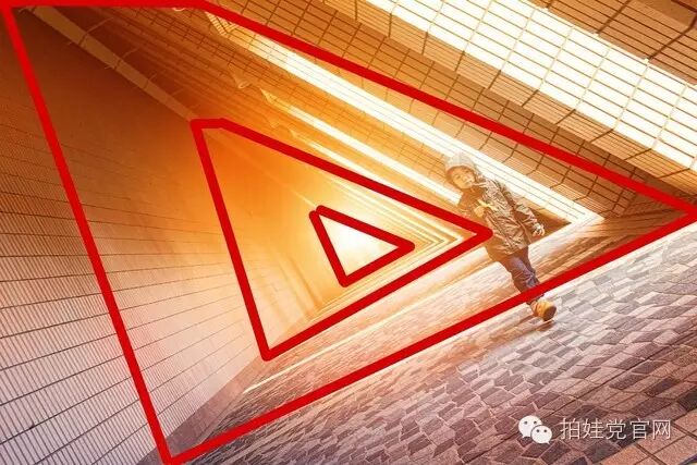 与正三角形构图表现稳定刚好相反,倾斜的三角形构图则表现的是运动不稳定,这样的三角形构图非常适合强调动感, 而且多个三角形的透视可以给观看者带来空间纵深感和冲击感
