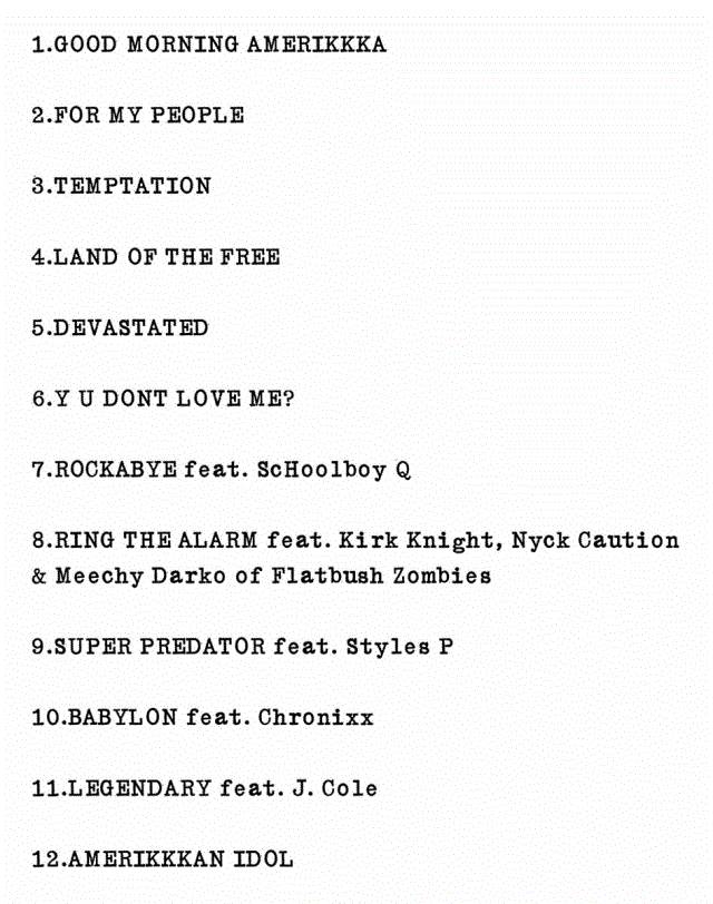 一首《Land Of The Free》让人们见识到了Joey Bada$$深邃的思维,而收录这首歌的新专辑《ALL-AMERIKKKAN BADA$$》也将于4月7日正式发行。今天早些时候,Joey通过推特公布了这张专辑的歌单,其共包含12首歌曲,其中J. Cole, ScHoolboy Q, Styles P, Chronixx, Kirk Knight 、Meechy Darko将作为助阵嘉宾。