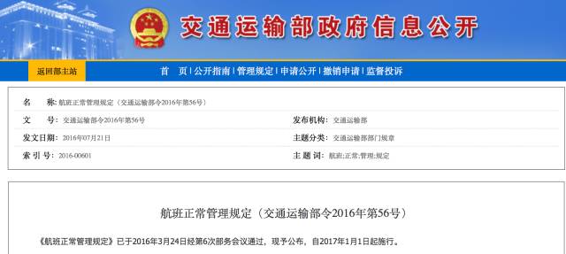 由航班延误引发的一系列问题有望得到进一步解决。日前,交通运输部在其官网上发布《航班正常管理规定》,该《规定》将于明年1月1日起实施。规定都有哪些内容?