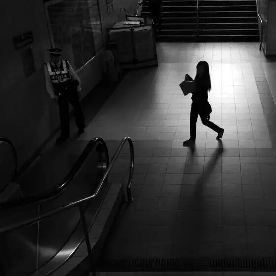 如果你想拍摄的场景中,主体不止一个,建议用上斜角对齐来组织画面。因为全部元素都集中在画面的一侧,非常容易导致画面失衡。