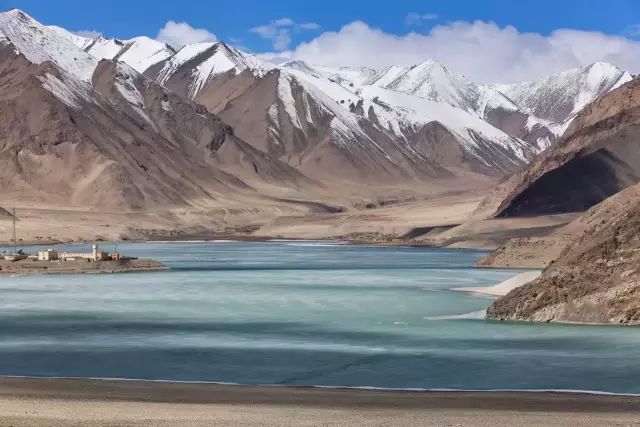 出了盖孜峡谷,见到帕米尔高原的第一面湖泊就是白沙湖,他承接了帕米尔高原东北部大部分冰川雪山融水。冬季水低石露,盖孜峡这个大风口,将河床湖沙吹起,日积月累,形成现在银沙裹挟的白沙山。风平浪静时分,沙山倒影湖中,水天一色,沙湖奇观显现。