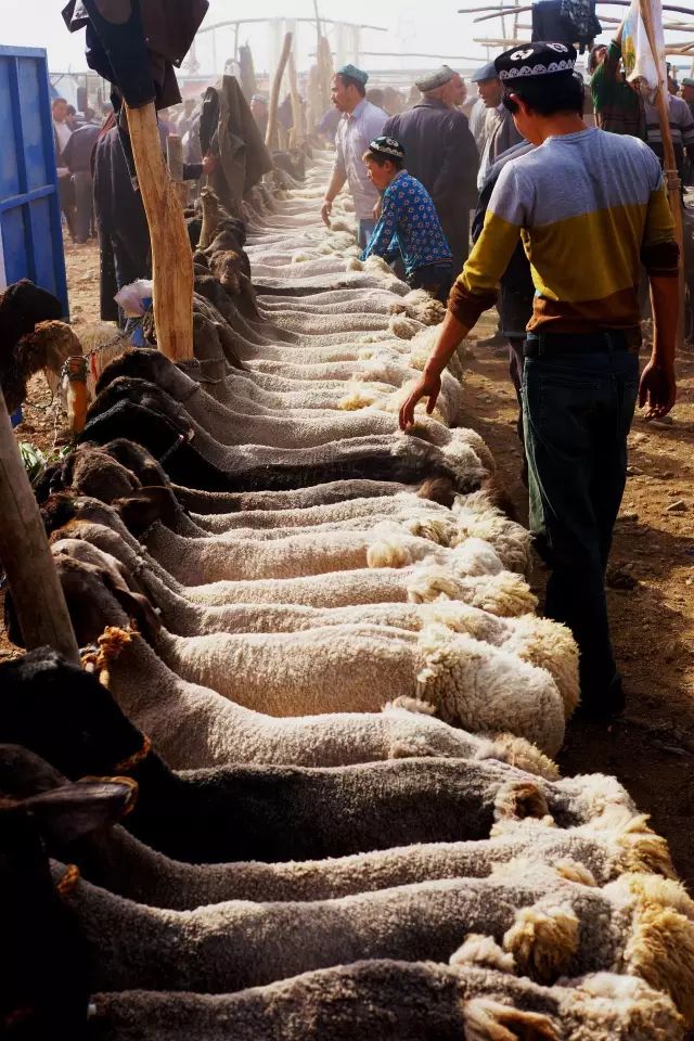 当成都、西安仅保留着像马市、西羊市这些老街名,而牛羊却无处寻时。在新疆,很多村落至今还保留着这些传统的牛羊市集,盛况不减当年。古代,为了保密物品交易价格,精明的商人会在袖子里用手“讨价还价”,这种古老“袖口议价”方式在小强幼时家乡的海边渔市交易依然能见,市场集约经济发达的今天,“袖口里的秘密”随消逝的鱼贩、牲口贩也渐渐淡出都市人视野。而在南疆,你依然能见三三两两袖下摸手、握手交易的千年传统牛羊巴扎。