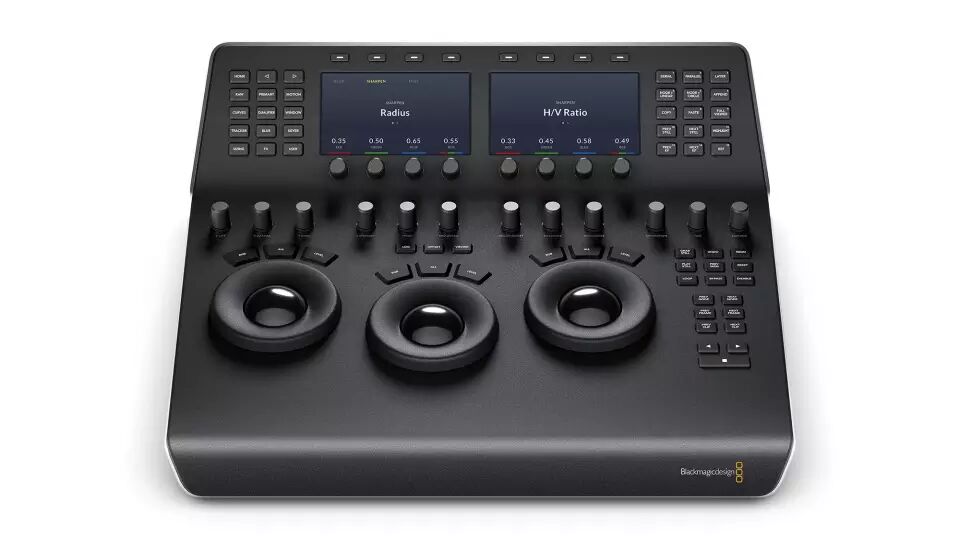 这两款新的调色台都采用美观耐用的铝金属机身,并配有专业、高精度的平衡轨迹球。轨迹球为暗部、中间调和亮部提供RGB色彩平衡调整,每项调整都有一个主控制,可通过移动式轨迹球外圈设置。其他控制旋钮采用了自定义设计,以精密机械加工而成,能提供极其细微的调整。按下这些旋钮可快速重置参数。调色台的背光旋钮便于用户明确哪些控制正在使用中,即使环境昏暗也可一目了然。DaVinci Resolve Mini Panel型号添加了两个高分辨率的屏幕,可显示当前选中工具的各项信息和参数设置,并配有更多DaVinci Resolve控制按钮。