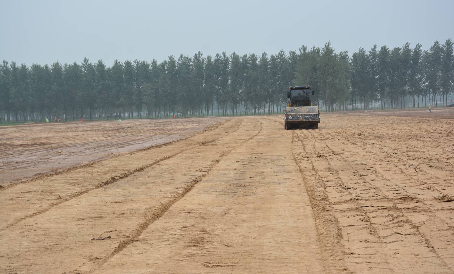 随着项目可研报告、总体规划的编制工作启动,菏泽机场航站楼、飞行区和辅助设施工程进入设计阶段。牡丹晚报记者昨日实地踏访机场场址发现,机场的路面基础工作已经启动,防吹坪、巡场道等工程已进入地面夯实阶段。