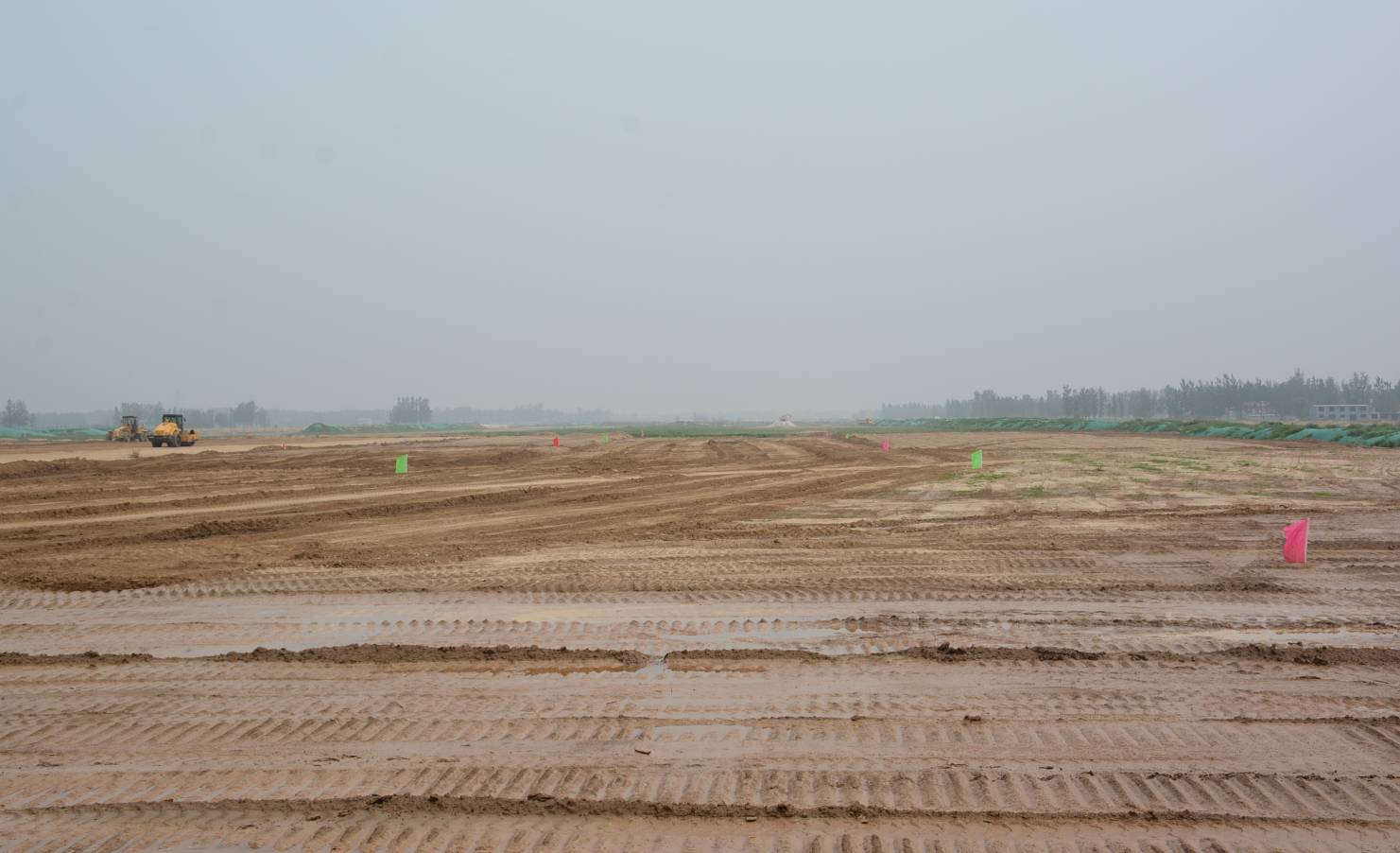 昨日上午,牡丹晚报记者来到菏泽机场场址,在机场筹建指挥部东侧,清障工作已经完成,机场排水工程、临时用电、土方填筑、施工道路等工程正在施工。记者在现场发现,空旷的场址周围围绕着一条正在硬化阶段的通道。据施工人员介绍,这是机场建设期间的临时通道,也是完工后的机场巡场道,这条巡场道宽5.5米,长约7000米,恰好围绕机场一圈。目前,已有3000米正在进行硬化路面基础工作。