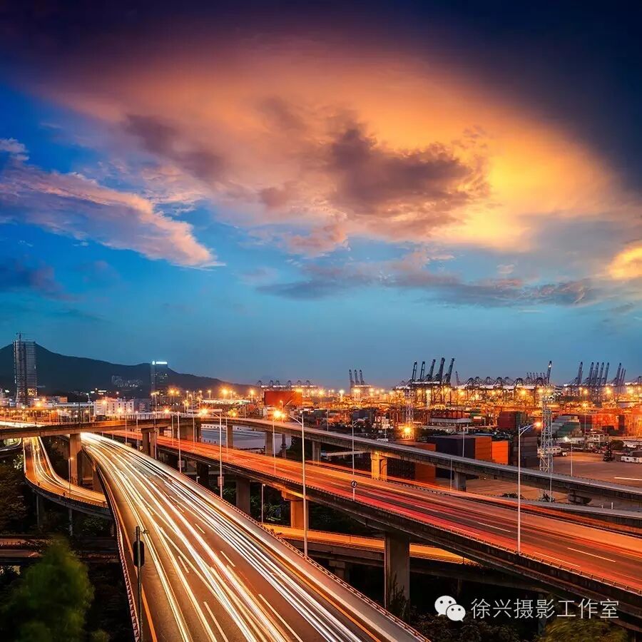 值得欣慰的是,作者已经意识到并通过后期拼加天空和云彩的方式极力挽救画面的不平衡。可对于这张图,右侧无限加元素也许可以平衡,但永远无法抵消顶心顶肺,这是个严重的画面构成失误。回看原图,纵横交错的交通网络从灯火辉煌的港口奔流而过,能体现作者的立意,但拍摄角度是大问题,如果能再往右移动机位,使要拍摄的主线形成一个A形,就能抵消公路暴镜的突兀,同时画面会更具视觉冲击。