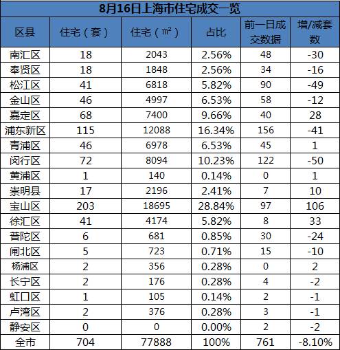 【平安好房讯】8月16日上海商品房成交1557套,签约面积129369平。去除办公、商业,全市住宅类共成交704套,签约面积77888平。