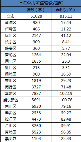 截止至8月16日23:00,目前上海全市一手房可售情况,全市可售房源共计约51028套,可售面积815.11万㎡。南汇区、浦东新区、青浦区、松江区目前库存量较大,而虹口区、卢湾区、长宁区、静安区库存较少。
