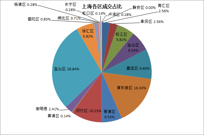 从各区域板块来看,宝山区成交203套,占全市总套数28.84%,位居第一。浦东新区成交115套,占全市总套数16.34%,位列第二。闵行区成交72套,占全市总套数10.23%,位居第三。