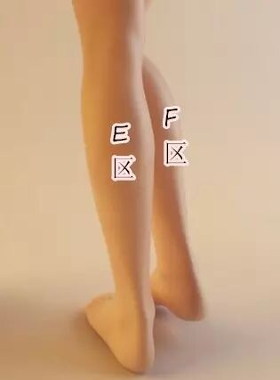 站姿在没有依靠物的情况下,是全靠腿部来支撑身体;所以E,F代表的覆盖着小腿肌群的“黄鱼肚”区域一定会因受力而鼓胀