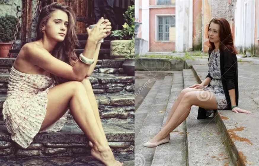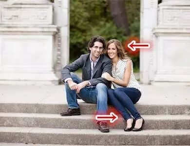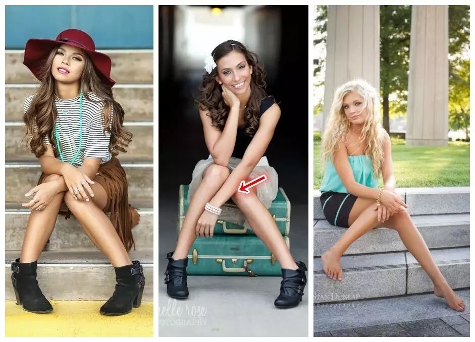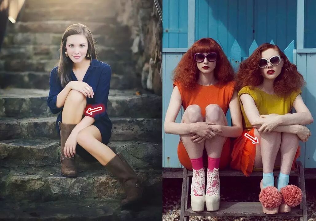 台阶坐姿一般会从正面拍,所以膝盖最好并拢(尽量靠近)
