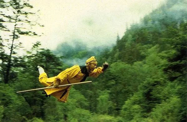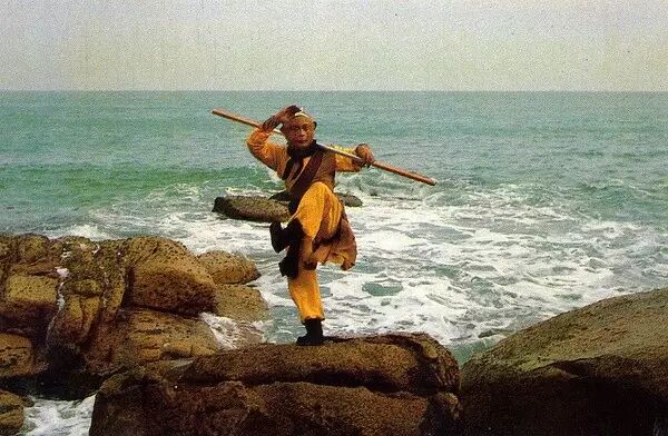 于是《西游记》剧组派了几个人到香港学习怎么吊威亚。当时TVB在拍一部金庸剧,导演杨洁、摄像师王崇秋就跑去看了,还跟徐小明导演探讨怎么操作。但时间有限,他们也只简单地看了几天,而且没学到一种关键的「过江龙」技术,就回来照猫画虎。