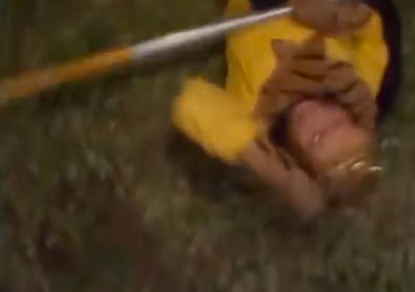 有一个镜头,是王崇秋抱着摄像机躺在地上,拍沙和尚举着禅杖飞过来的仰角镜头。但吊着沙和尚的钢丝断了,闫怀礼连同禅杖掉下来,整个砸在王崇秋身上,把他打晕过去。