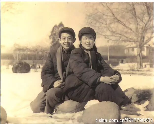 周传基和杨洁的结婚照,摄于青岛中山公园,来自周传基微博