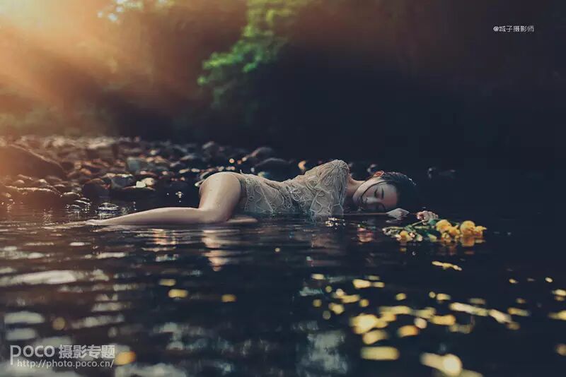 例1:下面这张片子使用了两个最常规的前景,一个是水面一个是漂浮在水面上的花瓣,拍摄时相机尽量贴着水面,让靠近镜头的水面和水面上的花瓣虚化更多一点,同时镜头也能纳入更多远景的光影。