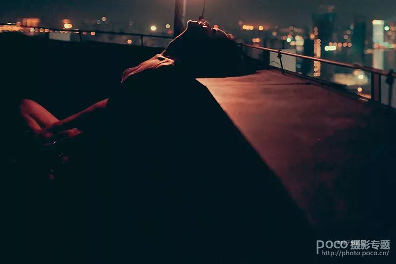 例2:下面这张是在长沙的一座高楼天台上拍的,用了围栏前景虚实导引,当然选择的机位也很重要,最好同时照顾到光影和远景,这张照片的护栏在顶逆光下有从暗到亮的渐变,这又是让一张照片更有层次的另一个元素,加上远景的夜色与画面左侧大片的暗部形成了又一个明暗对比。