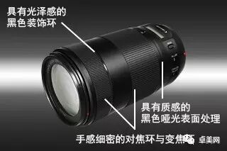 镜头采用了具有高级感的新外观设计,更具质感的哑光表面处理,搭配中高级机型在设计上具有很高的契合度。对焦环与变焦环采用了较宽的设计,易于操作,防滑凹槽间隔适当,手感细密。两者之间具有光泽感的黑色装饰环,不但很好地分隔了两个不同的功能区,更提高了镜头的高级感。按钮开关等部件并未凸起,与镜身有机地融为一体。此外,镜头卡口采用了耐用性良好的金属材质。