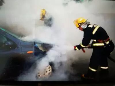 消防官兵到达现场后,通过现场侦查和询问知情人,发现1辆汽车车前盖处发动机位置起火,火势正处于猛烈燃烧状态,现场浓烟滚滚,如果不及时控制火势,一旦引发车辆油箱爆炸,后果将不堪设想。在基本了解现场情况后,中队指挥员立即下达命令,扑救人员立即出1支水枪,直攻着火点,控制火势,防止火势继续蔓延,并对油箱进行冷却降温。