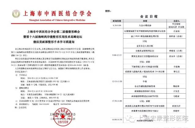 2016年6月25日,上海市中西医结合学会第二届微整形峰会暨第十六届海峡两岸微整形实战技术高峰论坛在上海宏康医院圆满落幕。