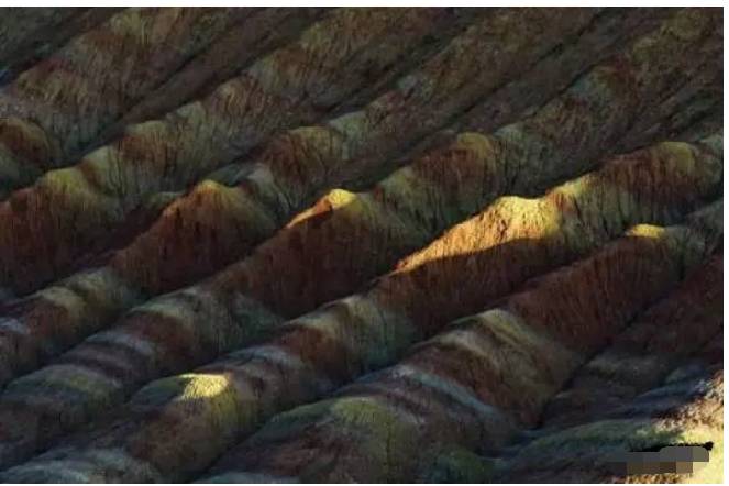 斜线构图通常是以线对角的形式来表现,能够营造一种活力感和节奏感。此构图在表现山峦、丘陵地区层叠的棱线时比较常见。摄影者利用手中的相机,通过物体本身所具有的形态,来使用倾斜的线条进行构图。并且可以利用一定的侧光或者侧逆光来增强画面的立体感,同时避免了画面的呆板性。
