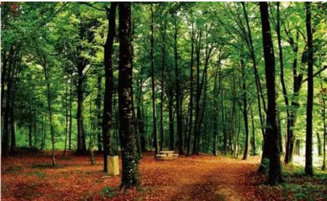 树叶和落叶的不同色彩搭配营造出森林的惬意感
