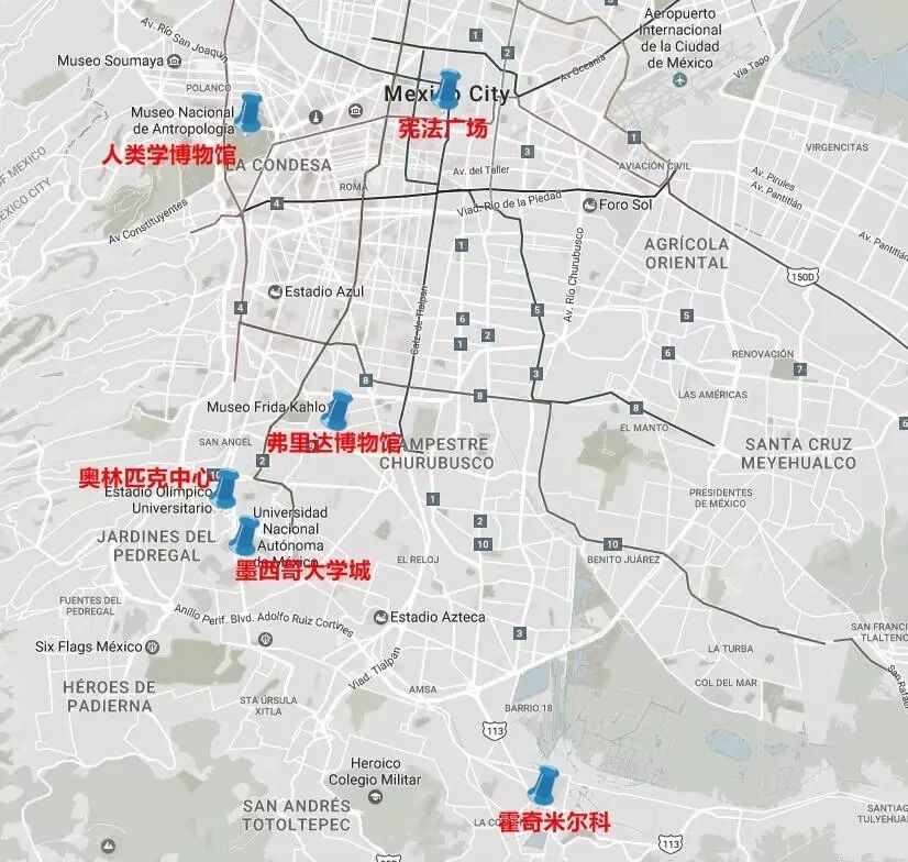 体验: 探访霍奇米尔科Xochimilco 及墨西哥国立大学等世界遗产;体验弗里达和迭戈·里韦拉的爱与痛, 包括蓝色小屋故居和托洛斯基故居,墨西哥总统府及国立大学等地;高效墨西哥城地铁游