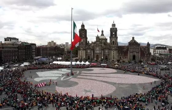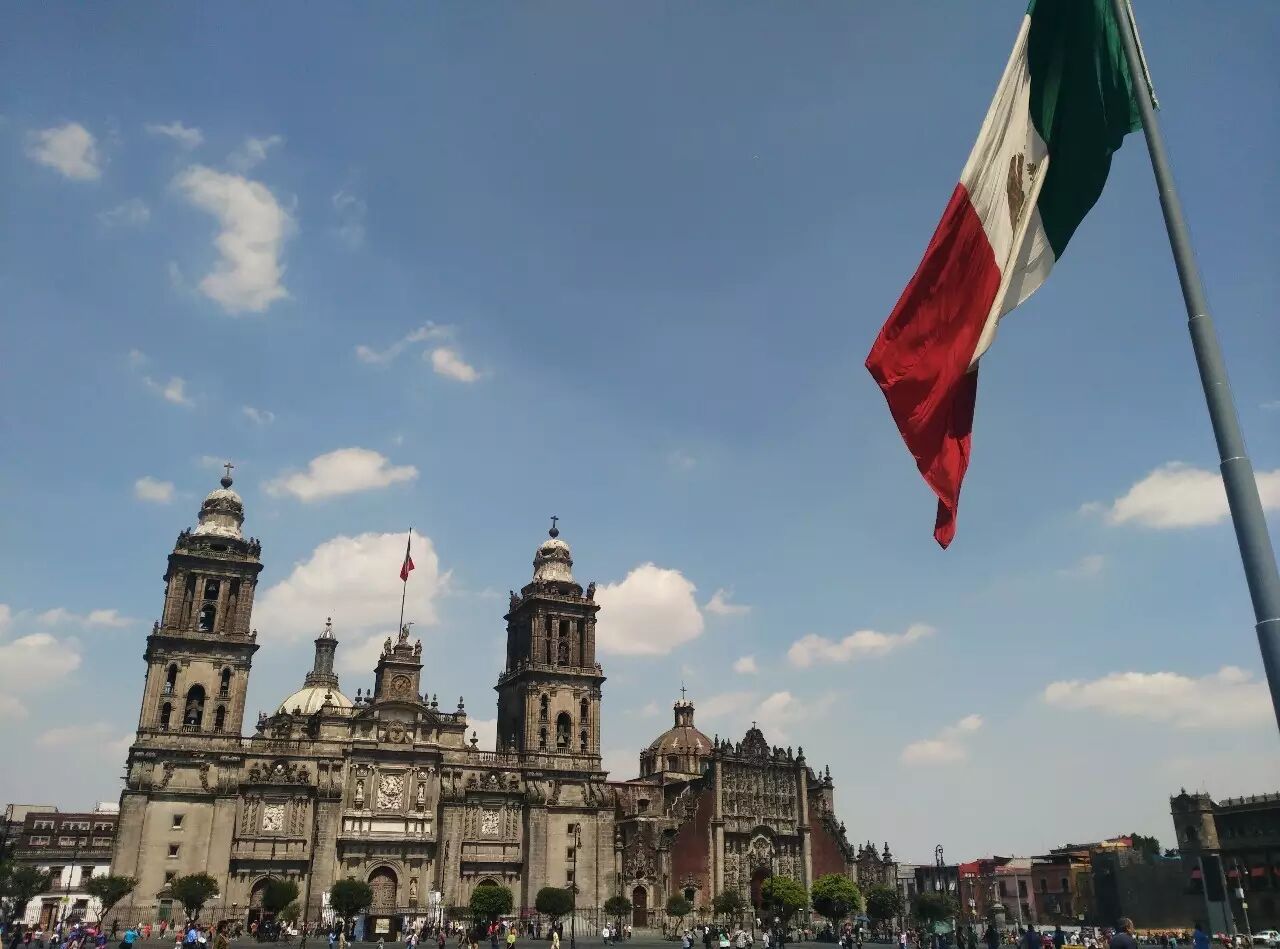 5. 宪法广场(Zocalo)和首都大教堂(Ciudad de Mexico) 宪法广场是墨西哥城中心,得名于1812年的西班牙宪法,场面极其壮观,是世界上最大的广场之一。如果在傍晚前来,还有收国旗仪式,基本和中国的差不多…那国旗是够大,一共是十二人扛着的。而首都大教堂建于1573年,位于广场北侧,是美洲最大和最古老的主教座堂,两者都是墨西哥城的象征 。