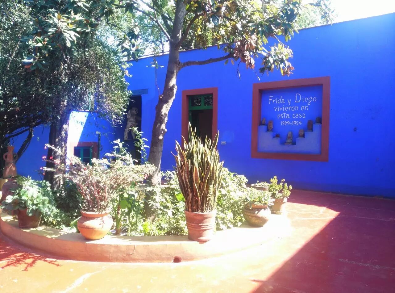 蓝色小屋故居,就是弗里达卡罗博物馆(Museo Frida Kahlo) 太震惊了,不是因为美而是人多!完全没有预料在这个环节要浪费很多时间,但无奈只能排队,100元门票拍照再加60 。大概全世界来墨西哥的游客都要满怀崇敬来此朝圣吧。弗里达是位著名的墨西哥女画家,而她挚爱又背叛,爱恨纠结的爱人就是上文的迭戈·里韦拉,她一生坎坷痛苦,与他炙热爱恨纠缠。,,还记得前文月亮金字塔一起吹吹风的有个叫托洛斯基的么? 他是斯大林时期的苏联二号人物,,如今他的家也是个博物馆,离蓝色小屋不远,有时间的小伙伴可以一同拜访。弗里达的作品个性鲜明又浓烈奔放,更多故事和信息,请看电影《弗里达》,非常推荐!