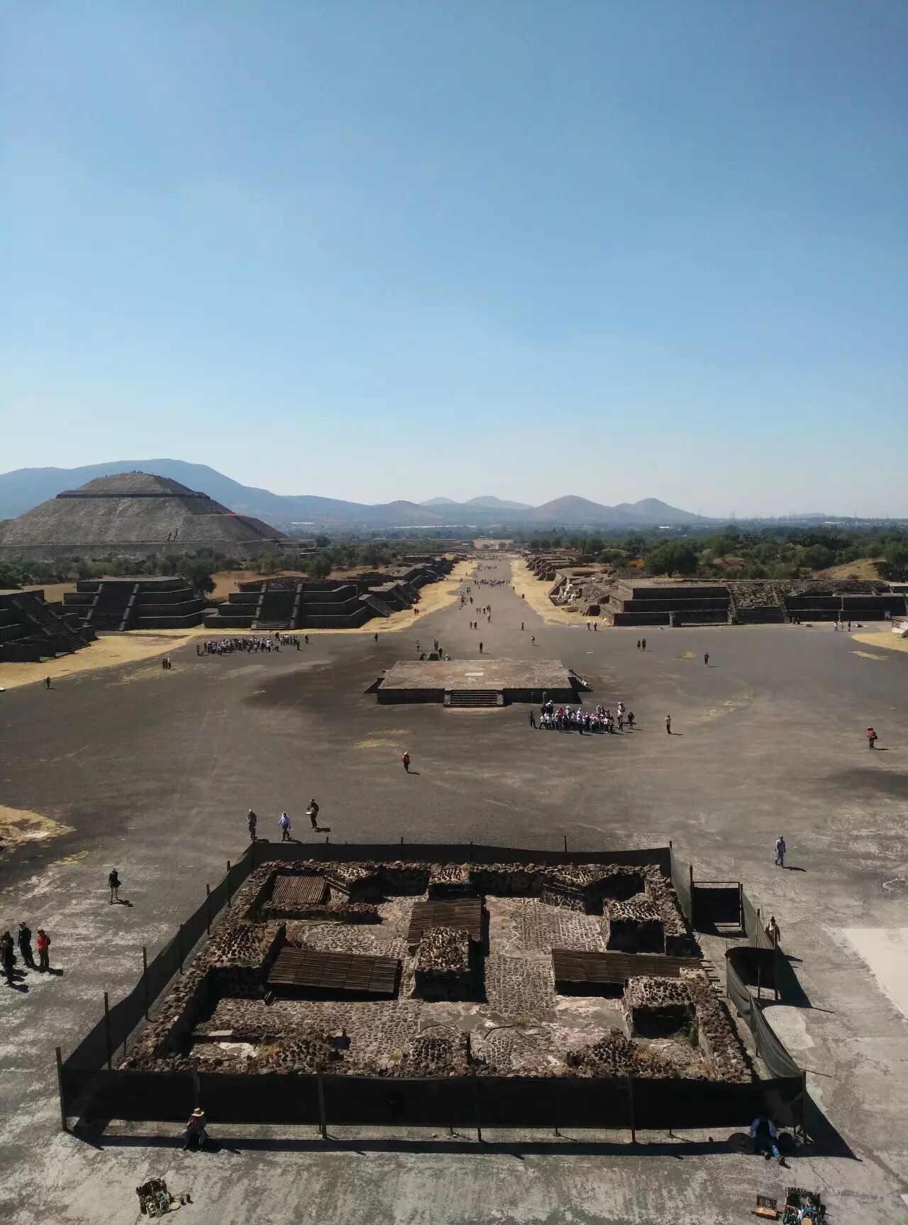 一早地铁到墨西哥城北站汽车站出发,去往特奥迪瓦坎的在车站八号门发车,每十五分钟有一班,约一个小时抵达遗址入口处一号门,购买票后进入。特奥迪瓦坎古城四面环山,海拔2200米,是中美洲最大的古城遗址,建于公元1世纪并崩溃于8世纪,历史已经无法考证出当时建造它的到底是谁(和玛雅金字塔不是一回事),但继承者“ 阿兹科特”人不仅传承了他们所崇拜的太阳神、羽蛇神与雨神,也笃信这里就是诸神牺牲自己让万物运行的神地。