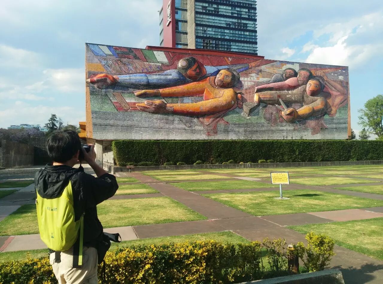 墨西哥大学城(Ciudad Universitaria)从奥林匹克中心步行几分钟即可到达,几乎是拉丁美洲最早最大的大学,始建于1551年,,这里始终秉承着自治精神,政府不能干涉其学术自由。2007年因杰出建筑列入世界遗产名录。穿过校区,无法想象这所1551年建立的大学,如今依然充满活力!