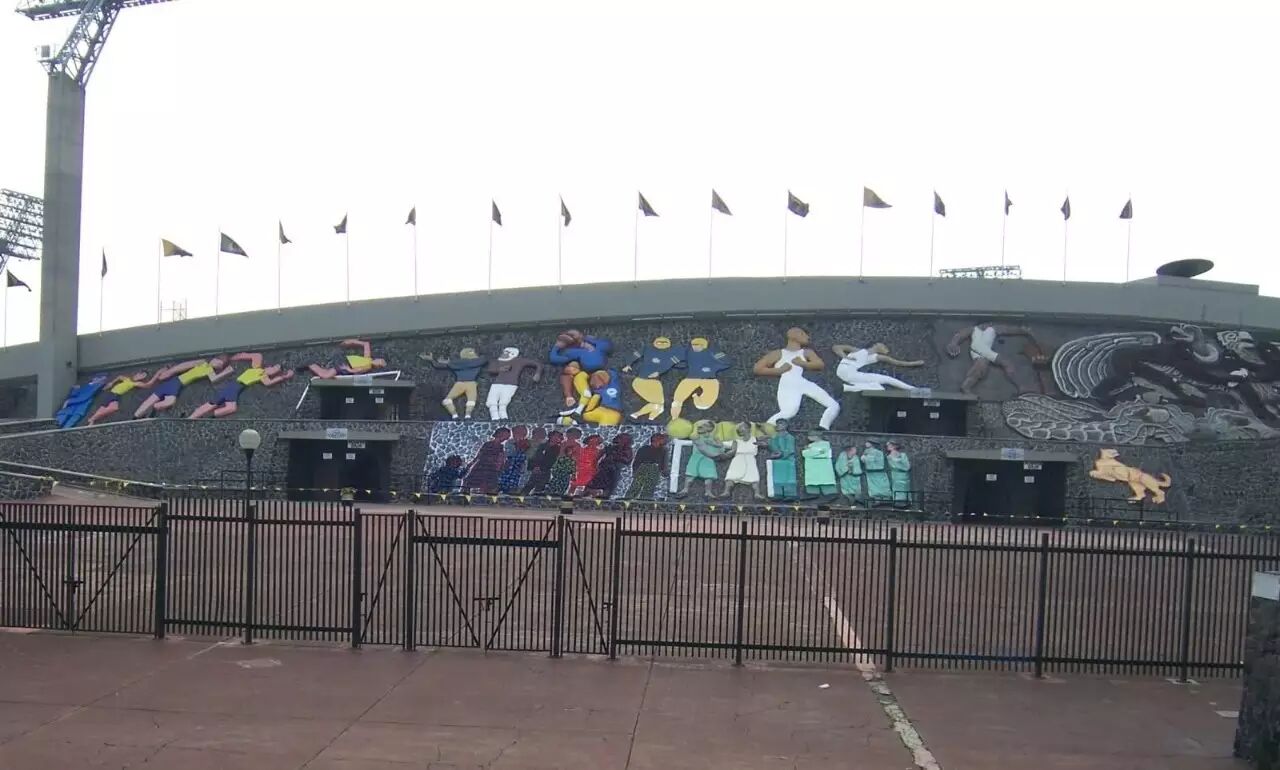 奥林匹克中心(Estadio Olimpico Universitario) 从蓝色小屋打个车很快就到了位于大学城的奥林匹克中心,火山岩材料建成的体育馆看起来和特奥迪瓦坎几乎一模一样!体育场的壁画还是来自于迭戈·里韦拉。这里是1968年第19届奥运会的主会场,也是奥运会史上首次采用塑胶跑道的地方,这里也是史上海拔最高的奥运会主办地(约2300米)。