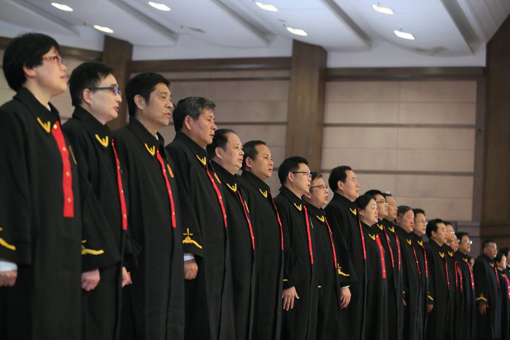 康为民院长向本次人大常委会新任命的89名审判员代为发放任命书