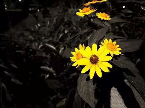 把对焦点放在小黄花身上,作为前景突出,背景虚化。