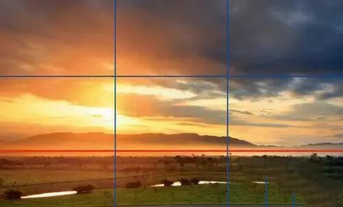 三分法构图是指把画面横分三分,每一分中心都可放置主体形态,这种构图适宜多形态平行焦点的主体。也可表现大空间,小对象,也可反相选择。这种画面构图,表现鲜明,构图简练。