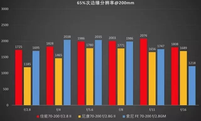 到了200mm长焦端已经是佳能70200IS全面领先的趋势了,70200GM则显得有些颓势。70200VR则再次雄起失败。
