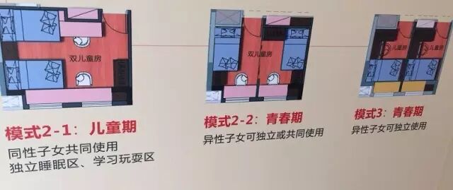 今年开发商推出的新品特别强调这一点,多功能房间都有非常强的变形能力,可以适应孩子在不同阶段对家庭空间的使用需求。