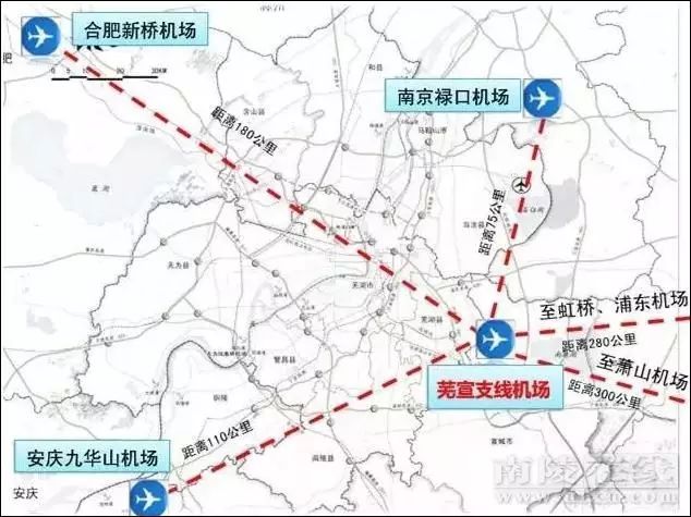 据传,此机场从一开始说规划在南陵九连乡建设,我们南陵县位于芜湖市,铜陵市,宣城市的交接处,地理位置优越,建在南陵县辐射面积更广,人口更多,但很可惜。。。。飞机场还是建在了芜湖县湾沚镇小庄。。。。。。