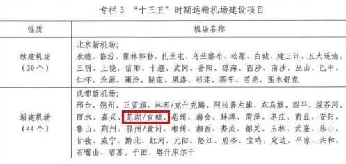 中国民航局日前发布《中国民用航空发展第十三个五年规划》,描绘了到2020年民航产业发展蓝图,并提出系列目标。“十三五”期间全国续建、新建机场项目74个,涉及安徽芜湖、宣城、亳州、蚌埠。