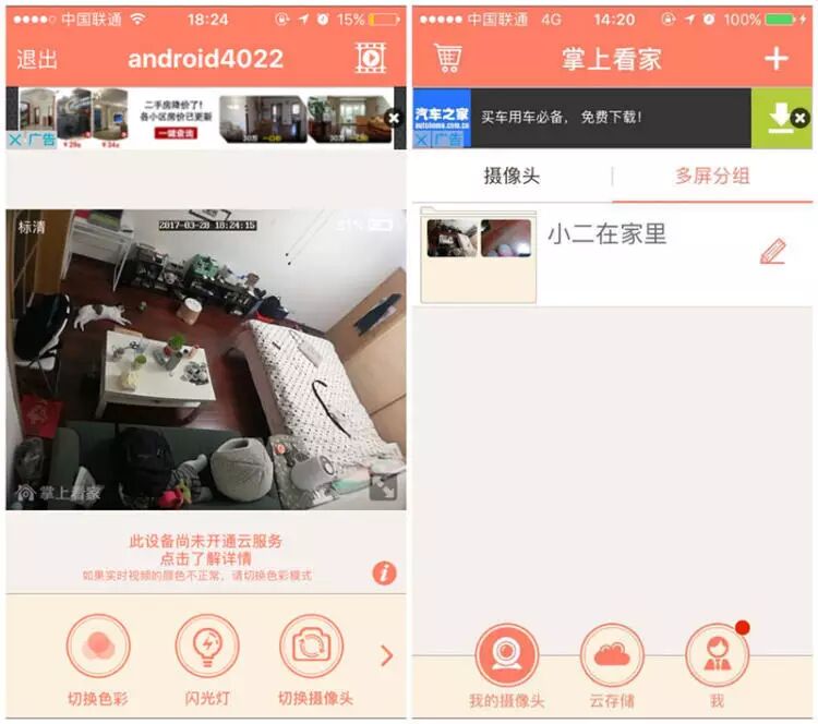 想要解锁“多个机位共同监控”的功能,需要其中一台机子购买app上的“云存储”服务,18元1个月,可以享受视频储存30天、多屏观看、高清视频、去广告这些额外的功能。