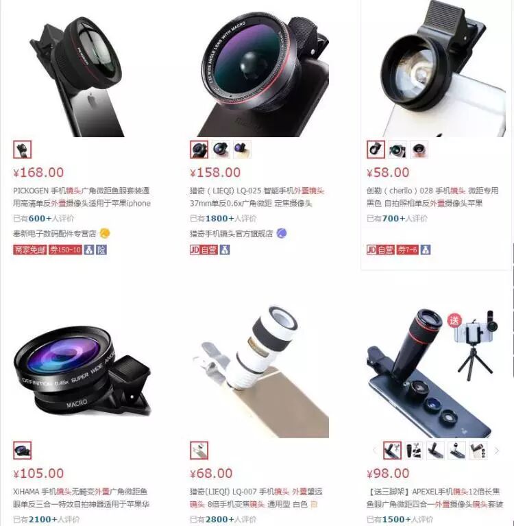 配合手机而推出的外置手机镜头已经数量繁多,如果你发现直接用手机拍摄不了房间的全貌,加上一个外置广角镜头就可以了。想要买也很容易,周到君搜了一下,各种电商平台加起来上千种选择。