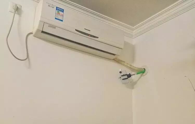 周到君用的是闲置的自拍杆,正好能利用空调孔固定。