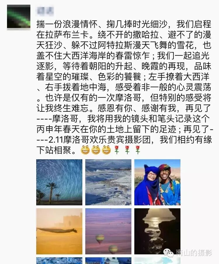 3. 具有丰富摩洛哥旅行经验的摩洛哥旅游局合作摄影师-南山老师用多次摩洛哥带团经验为您量身定做的一切线路细节,让您有独特的体验;