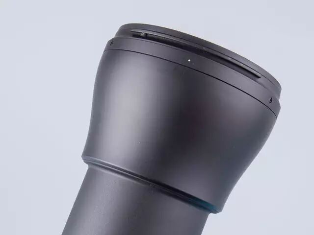 腾龙SP150-600mm F5-6.3 VC G2镜头的遮光罩采用的是全塑料,外表面有磨砂效果,只是这类超长焦镜头的遮光罩一般在边缘会包上橡胶,用于垂直放置镜头的时候更好地接地与缓冲震动,但腾龙SP150-600mm F5-6.3 VC G2镜头的遮光罩没有这样的设计,如果按照习惯垂直放置镜头的话,容易磨损遮光罩的边缘。