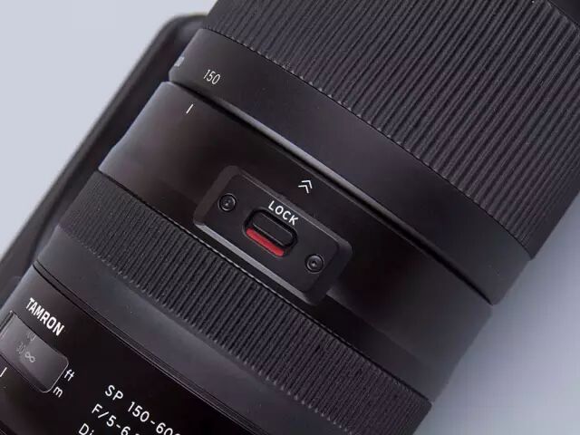 SP150-600mm F5-6.3 VC G2镜头采用单筒变焦设计,所以相对来说,活动的镜组重量还是比较大的,垂直向下的时候会有镜筒脱出的可能,因此设定锁定拨杆在携带的时候会更放心一些。除此以外,变焦环还可以前后推动,这个腾龙称作随心锁,可以在任意焦段位置锁定变焦环,相对于单独一个锁定拨杆的镜头,显然这个设计更加方便一些,可以固定某个焦段后随意移动机位。