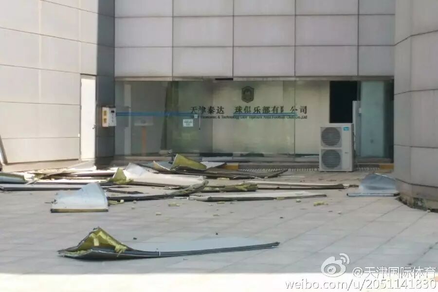 2015年8月13日,天津塘沽发生大爆炸事件,距离爆炸中心仅不足两公里的泰达足球场受损严重,包厢到处都是破碎的玻璃,折叠座椅也和地面分了家,连办公区的天花板都摇摇欲坠,许多球迷都很心疼曾经的“家”遭遇如此重创。