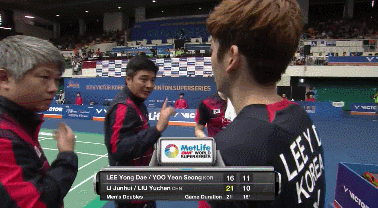 结果想必都知道了:李龙大/柳延星 16:21 22:20 21:18逆转了李俊慧/刘雨辰